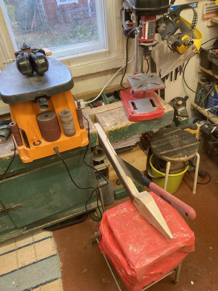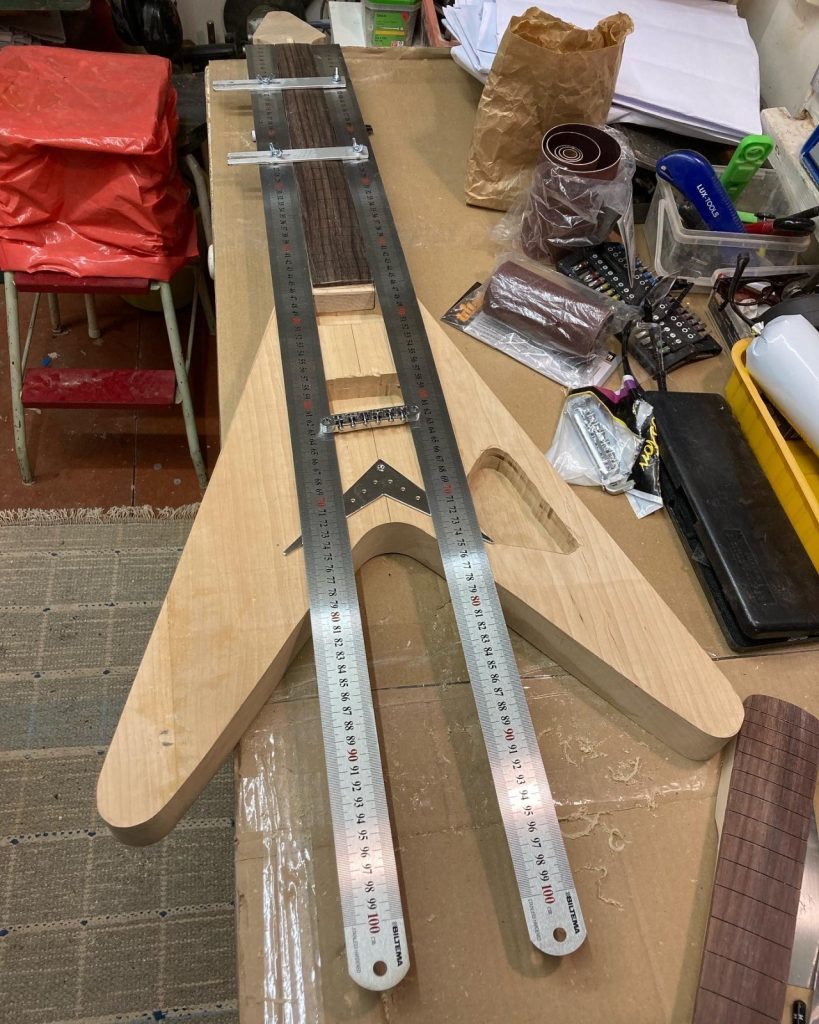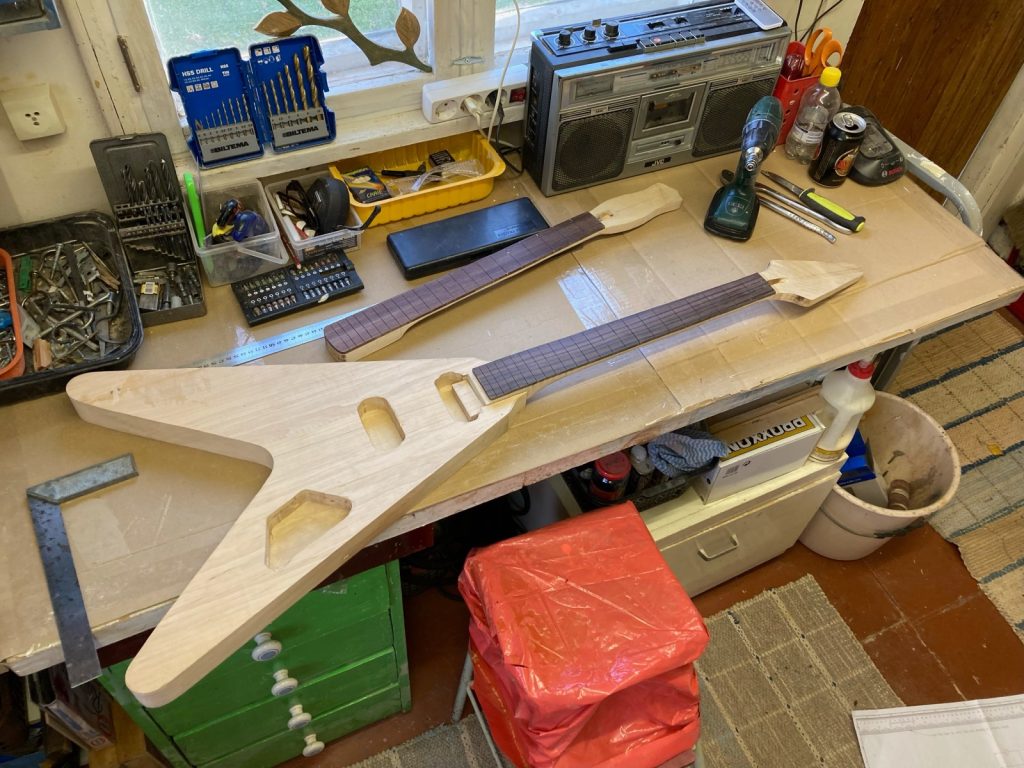 Eka metritavarasta valmistunut, myös eka set neck -kepakko. Joensuun Kansalaisopisto rules! Syyskauden urakka 1/3.