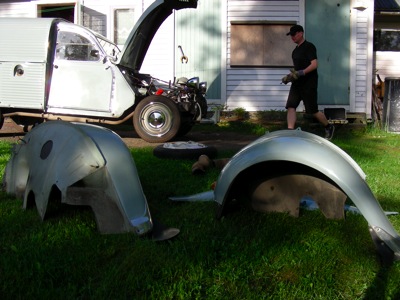 Pakoputkistolle joutuu kehittelemään jottain, että sen saa siististi oikeelle puhkumaan, bensaletku pitää pyöritellä uusiksi koska bensapumppu uudemmassa AK2 -koneessa on eri puolella ku AK:ssa... Ja tosiaankin jarruputkille pitää kehitellä jotain ettei litkut rupia kiehumaan kesken retken.