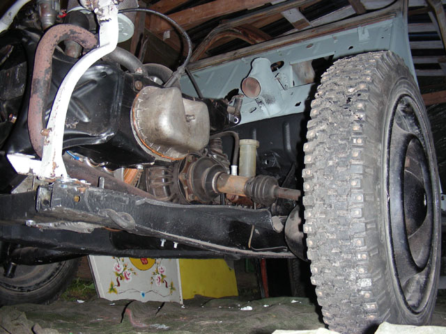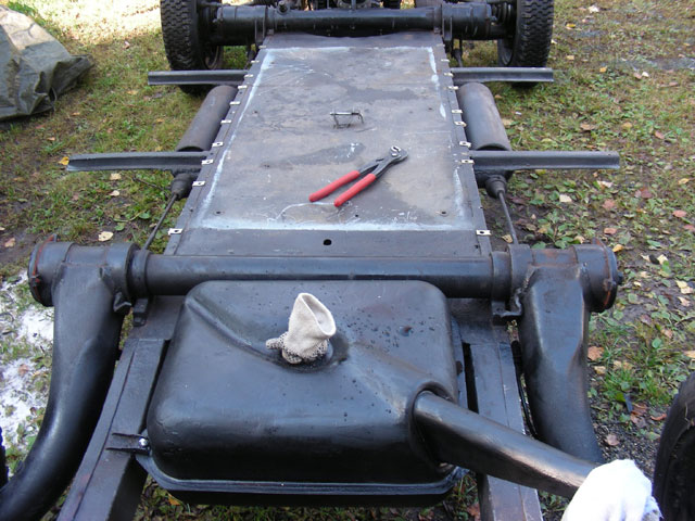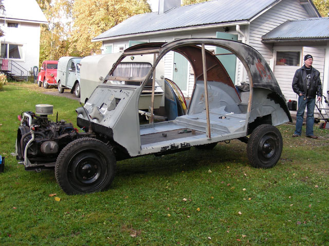 Kori on nyt sitten pultattu rungolle. Huonoa ompi laatu uusissa korimuttereissa, kun ovatten hitsattu läjään 4 pienellä pipanalla ja kun niitä vähänkin kovemmin murjaisee niin hitsit pettää ja mutteri alkaa pyöriä. 3 zipaletta meni siistaksi ja tietenkin jousipönttöjen kohalta. No, läjässä on.