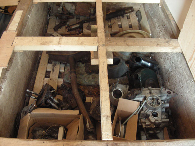 Vanteet jäi maalamatta loppuun ku rupesi ripeksimään vettä ja formulat alkaa. Ehtoolla pitää liiterin lattia lakata toiseen kertaan, sitten pääsis kantaan romuja sissään. Löytyi vielä lissää kamaakin jotka pitää piilotella lattian alle...