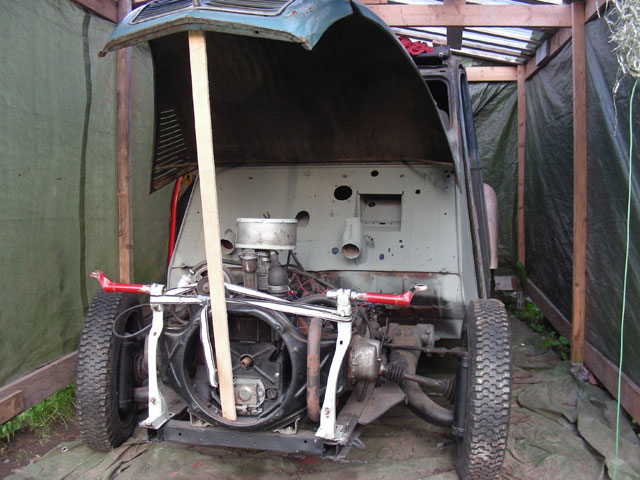 Tänään kursin etulokarit valmiiks, kaikkia kiinnikkeitä joutui lopulta modaamaan mutta nyt istuu ihan nätisti. Apurin puolen venttiilikopan syvennystä joutui laajentamaan n. 5cm ylös & eteenpäin että mahtui kohalleen. Kolmiokotelon alle tulevia peltejä piti taivutella rajusti että mahtuivat eivätkä jumineet ohjausakseliin tai tukivarsiin.