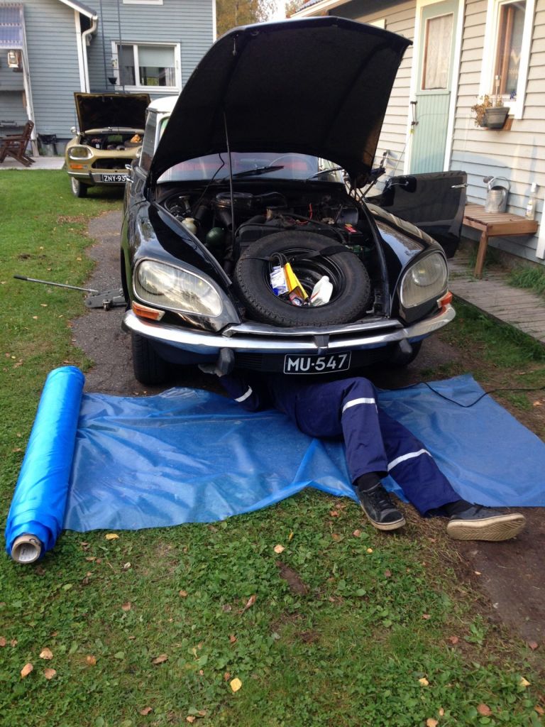 Puhtaasti masokistisistä syistä säntäsin ID –remoon jo klo. 9. Sitroisen kuormassa oli paljon uutta ja mukavatakin paikalleen sovitettavaa vaan maltoin mieleni ja purin auki etulokasuojien alta löytyvät peltisuojat joiden alta sitten löytyy hirmuiset hydrauliikkahämähäkin pesät