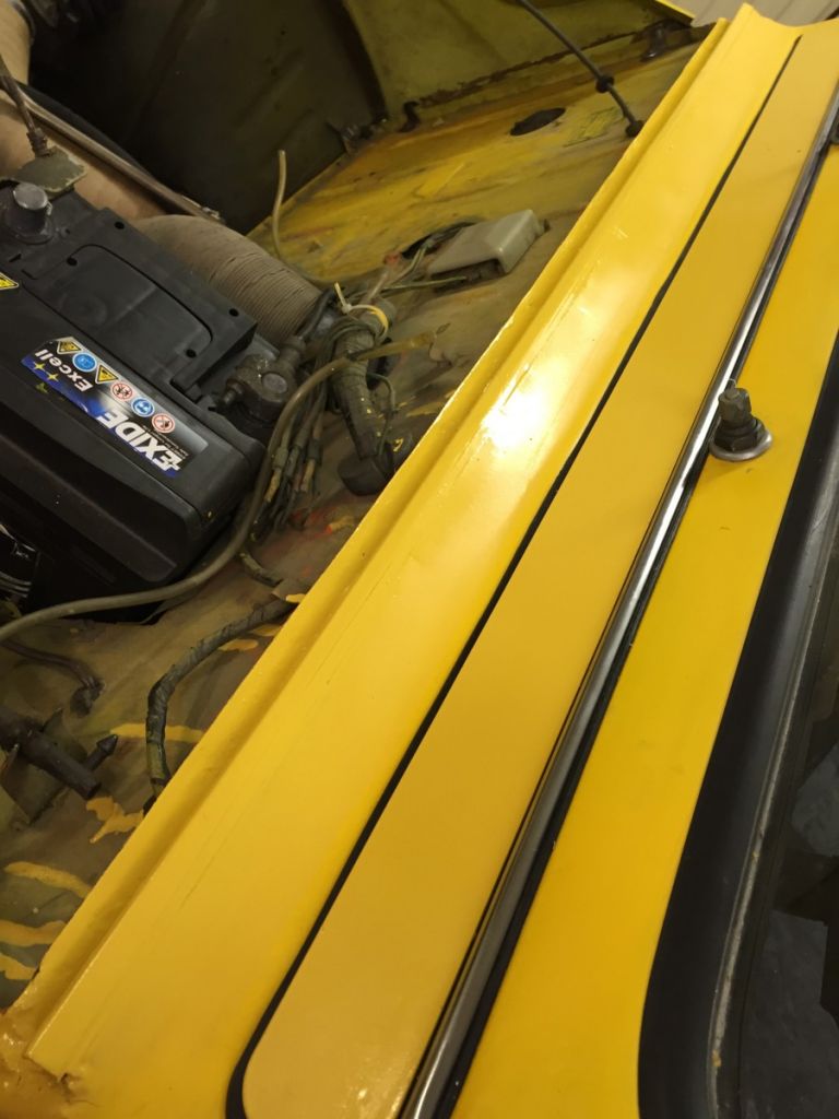 Uudet matot leikkelin ja sovittelin paikoilleen. Penkit paikoillaan. Tuuletusluukku paikoillaan, konepellin sarana korjattu - toivottavasti kestää. Pitää vielä hiukkasen paikkamaalata kun onnistuin murjomaan asennusvaiheessa.