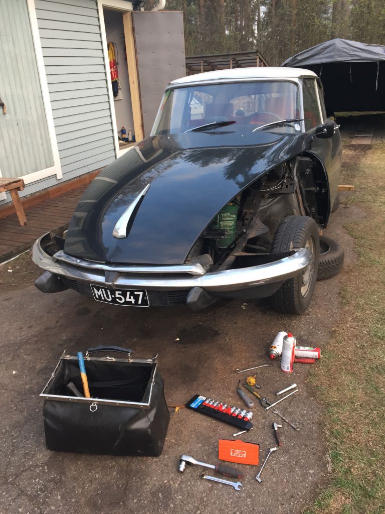 Päävaraaja oli yllättävänkin tiukasti jalustassaan ja rikoin perinteiseen hätähousutyyliini viimeisen ehjän 2CV:n öljynsuodattimen irrotusavaimen ennen kuin turvauduin isoon vasaraan ja tuurnaan. Lähtihän se, perkkele!