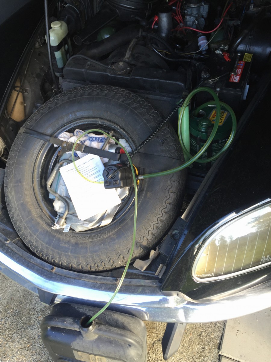 Eilen suoritin vihdoinkin pitkälle venähtäneen LHM -nesteiden vaihto-operaation. Nythän siellä putkistossa on seilannu Moponjetin puhdistuslitkut jotka olis pitänyt vaihtaa jo 500-1500 km ajon jälkeen.