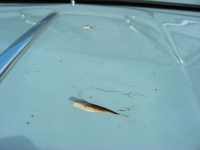 Kotipihaan palatessa odotti sitten karmiva näky, konepellille keväällä ilmestynyt hämähäkkimäinen kittien halkeilu oli räjähtänt totaalisesti auki - viddujen viddu 🙁 Sehän irvisteli jo syksyllä ja nyt keväällä & kesällä hajoominen senkun kiihtyi. Tarkemmin ku katteli nin näkee että koko saatanan läntti repeilee täsmälleen samalla lailla kun kattokin hajosi. Perkele, en paremmin sano.