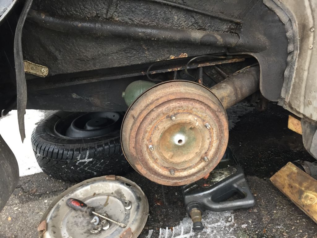 Tänään raapaisin apurin puoleisen takaloksun ja pyörän vege ja vaihdoin myös sinne varvan pään suojakumit, uuden sokan ja käänsin kokoojapussukan kiinnityksen oikein. Itseasiassa vaihdoin koko varvan, koska entinen sokka oli ruostunut totaalisesti kiinni ja katkesi kun yritin herkistellä sitä irti - joutikin.