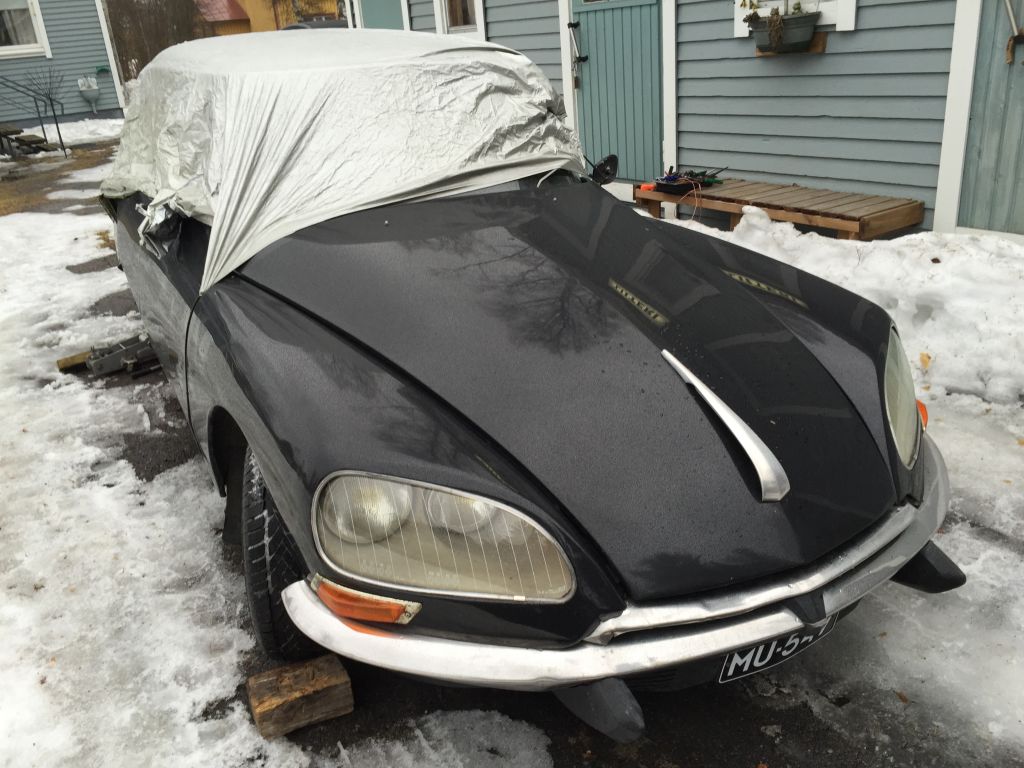 Ensimmäinen kuivahko & lämpimähkö päivä pitkään aikaan ja kiiruusti peruuttelinkin sitten ID:n pressutallin vesiesteestä hiitehen. Tässä on nyt joutunut enemmän ja vähemmän arpomaan tuota säilytysproblematiikkaa, kun pressutallissa on 10 cm vettä pohjalla ja jos ID:n jättää pihalle, joka on kuivempi, niin kastuu sisältä koska katto vuotaa kuskin oven yläreunasta ja peräkonttiin loristelee kanssa huomattavia määriä kirottuva H2O:ksi kutsutta lirua. Noh, vintiltä löytyi Picasson wanha suojariepu joka ylettyy sen verran ID:nkin yli että em. vuotokohdat saadaan suojaan.