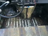Lisää hitsattavaa löytyi, mutta yllättävän vähän kuitenkin eli kuskin jalkatilaan sain puukotettua reikeliä. Pitää yrittää viikonloppuna nostaa ajokkia yläasentoon ja siivota ongelmakohdat myös alhaalta päin että saa kerralla tolkun paikat.