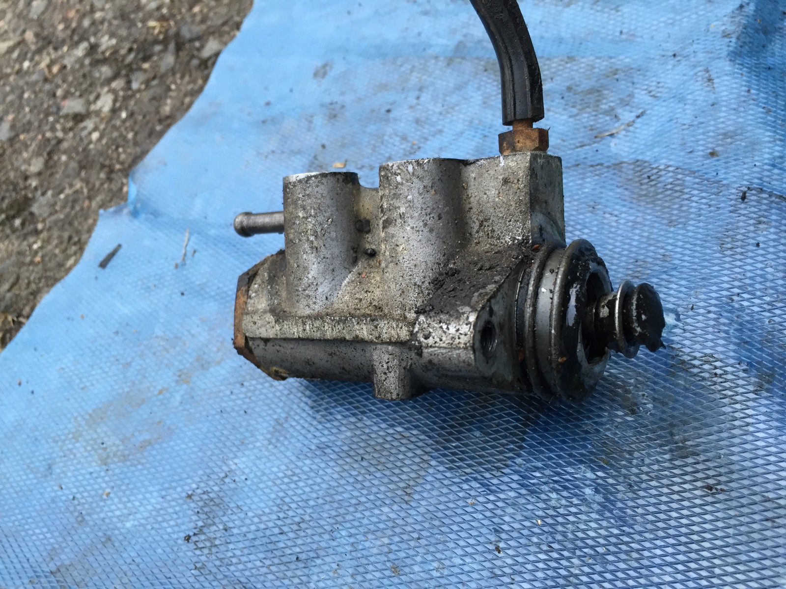 Kun päävaraaja hiluineen oli irti, pääsikin sitten jarruventtiilin yllättävänkin helposti käsiksi. 4 kpl 8mm mutteirilla kiinnitettyä painepuolen putkea irti ja pari klemmarikiinnitteistä plöröputkea vex, sitten kabiiniin josta 2 kpl 11mm pulttia jarrupolkimen juuresta irti ja sitten kolahtikin jo konehuoneessa kun venttiili tippui auton alla olevaan rasvaiseen liejuun. Joutikin, vuotava oli se. Järkyttävä määrä on kyllä nuita LHM -paluupuolen putkia konehuoneessa ja niissä jokaisessa vielä haaroituksia sinne sun tänne ja jokaisessa haaroituksessa vielä klemmareita ja nippusiteita kaikissa sateenkaaren väreissä eli paskan ruskeina.