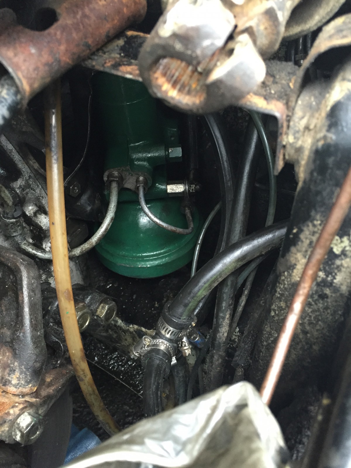 Vaikka aamusella satoi aika railakkaasti, painelin heti aamukahvin jälkeen pihalle ID:n kimppuun. Ensmäisenä hommana kävin läpi kaikki 667 klemmaria, muutamia nippusiteitä ja murjoutuneimpia yksilöitä korvasin kunnollisilla ja sitten kävin päävaraajan kimppuun. Päävaraajapallo meni paikoilleen melko vähällä pungertamisella ja uusi varaajapallo oli sen verran pienempi kuin entinen niin tilaa oli yllin kyllin.