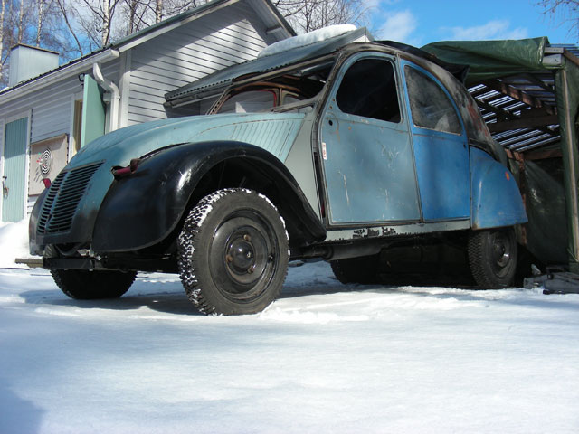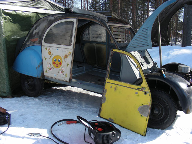 Tänään puskin Eldon pihalle ja tsekkailin miten rojektia jatkaisi. Apurin etuoven otin ekaks käsittelyyn kun siinä on saranat vinks vonks ja revenny.