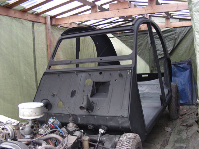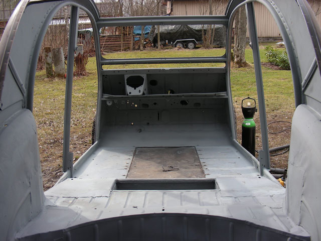 No, kun putki kerran oli päällä, vetäisin koko korin ulkopuolen ruosteenestopohjamaalilla ja kun maalia riitti niin suttasin myös sisäpuolen lattioita lukuun ottamatta. Viimeisiä roiskeita viskellessä rupesi satamaan, mutta kerettiin Rouvan kanssa pukata Eldo piiloon ja pahemmilta vaurioilta vältyttiin.