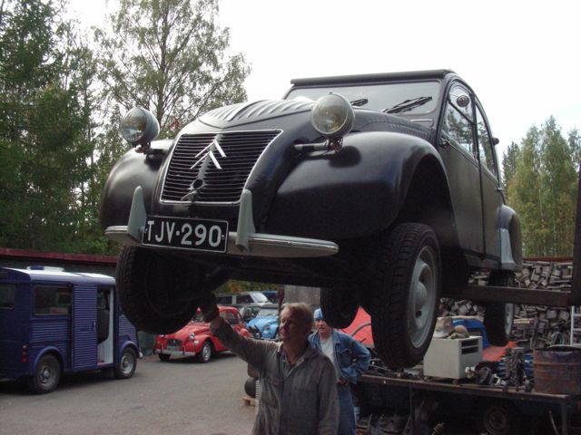 Tänään oli Jaoksen huoltopäivä jossa nostettiin Eldo trukilla ylös ja spruuttasin alustan kotelosuoja-aineella. Etujarrut kantaa harmillisesti, säätökään ei juuri auttanut kun kyseessä taitaisi olla pykineet käsijarruvaijerit. Hitto, kun kahvaa erehtyy kiskaisemaan niin jarrut, etenkin kuskin puoli, jää laahaamaan. Päh ja pöh.