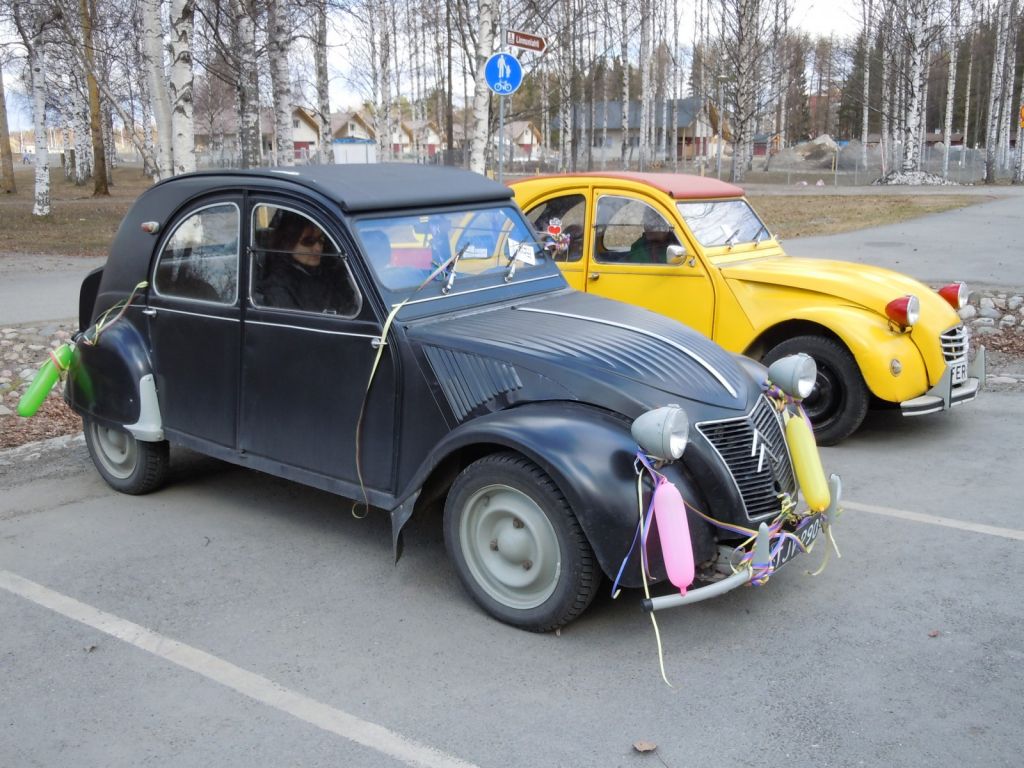 Vappuajelut ajeltiin ja yllättäin meitin koko kalusto olikin ajossa, eli Systeri perheineen ajeli Punikilla, Riikoset Pakulla kun heitin omasta oli koneremppa kesken ja myö Eldolla. 24 Rättäriä huruutteli Joensuun keskustassa ja kahvitteli Koivuniemellä. Oli ihan saatanan kylmä, mutta mukava meno muuten.